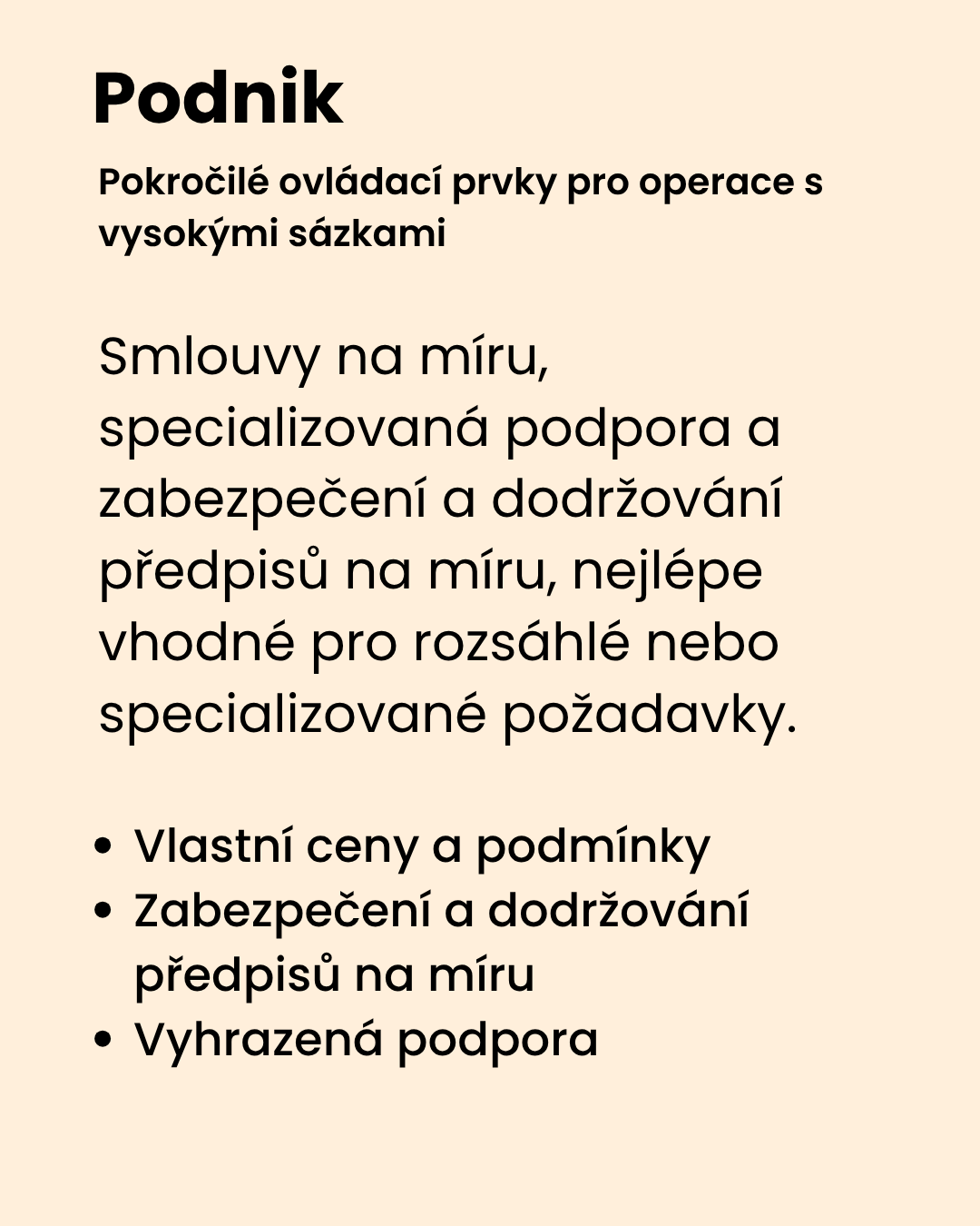 Flexibilní plány navržené tak, aby růst s vámi – s podnikovými možnostmi pro týmy, které potřebují úplnou kontrolu nad zabezpečením, umístěním dat a smluvními podmínkami.